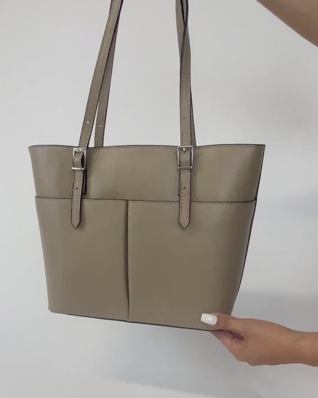 \nAdjustable handles with silver-tone metal buckles add a sophisticated touch and ensure perfect comfort in any situation. The two external front pockets make this bag functional even for everyday use, perfect for keeping everything within reach in style.